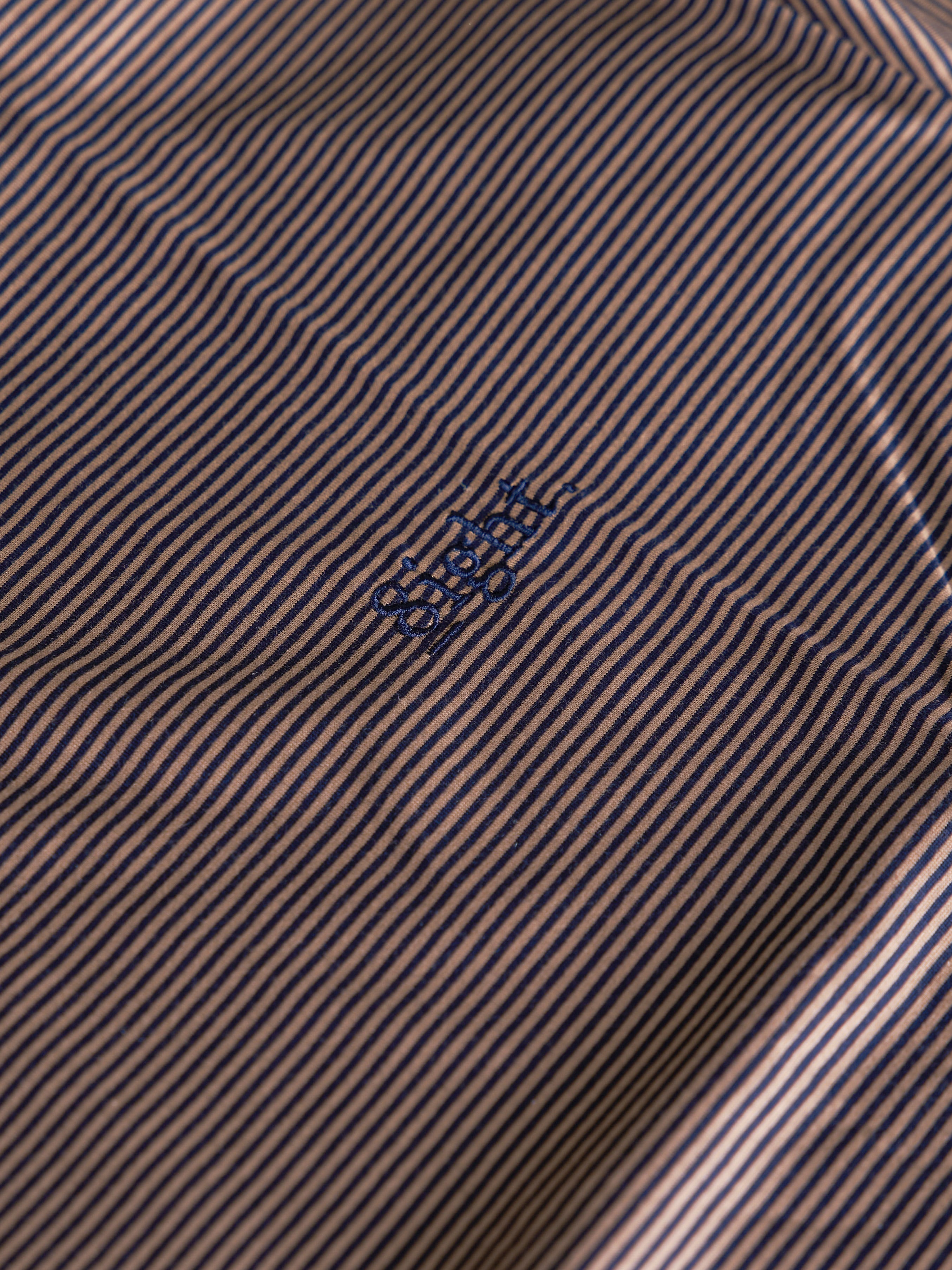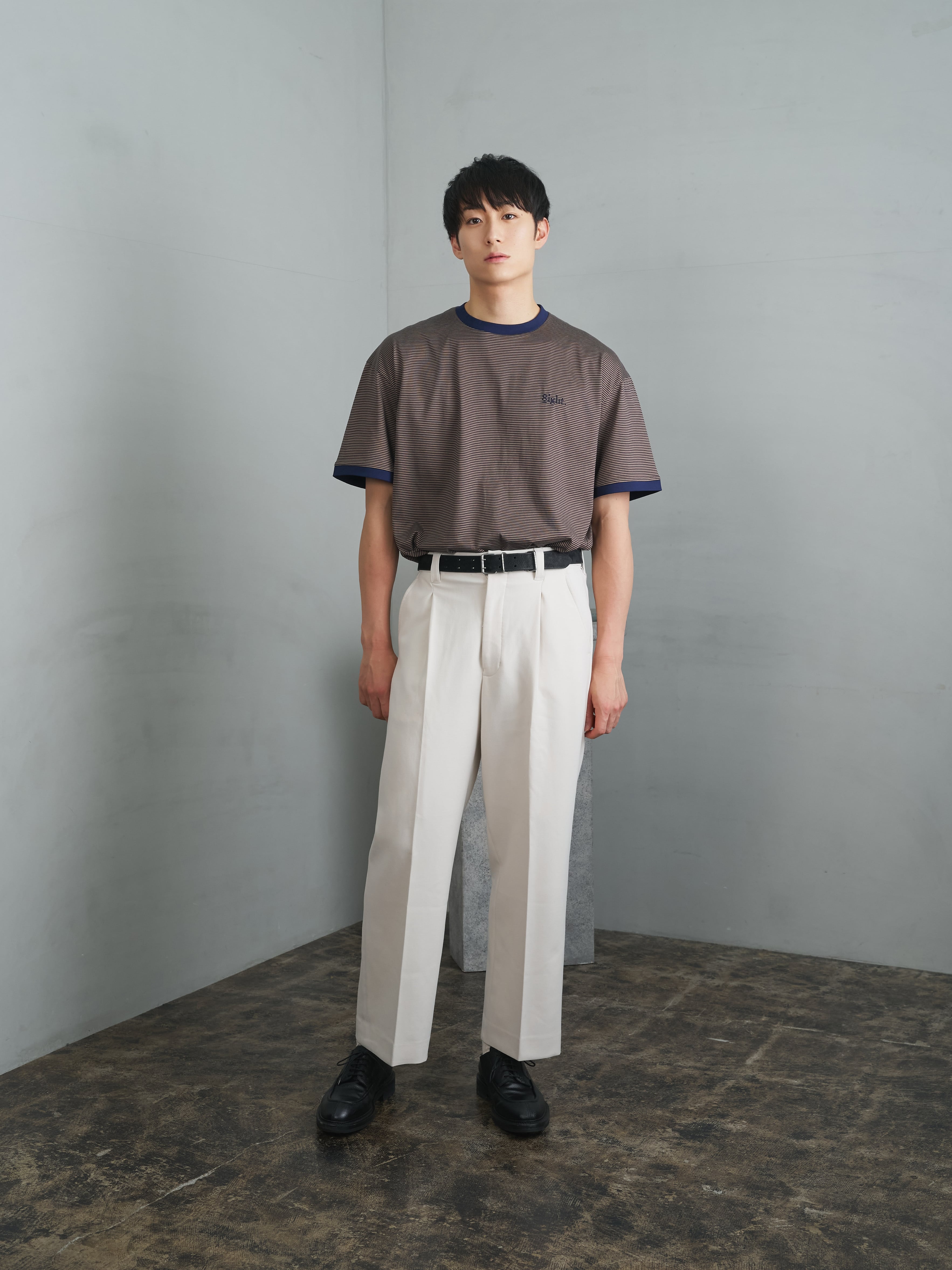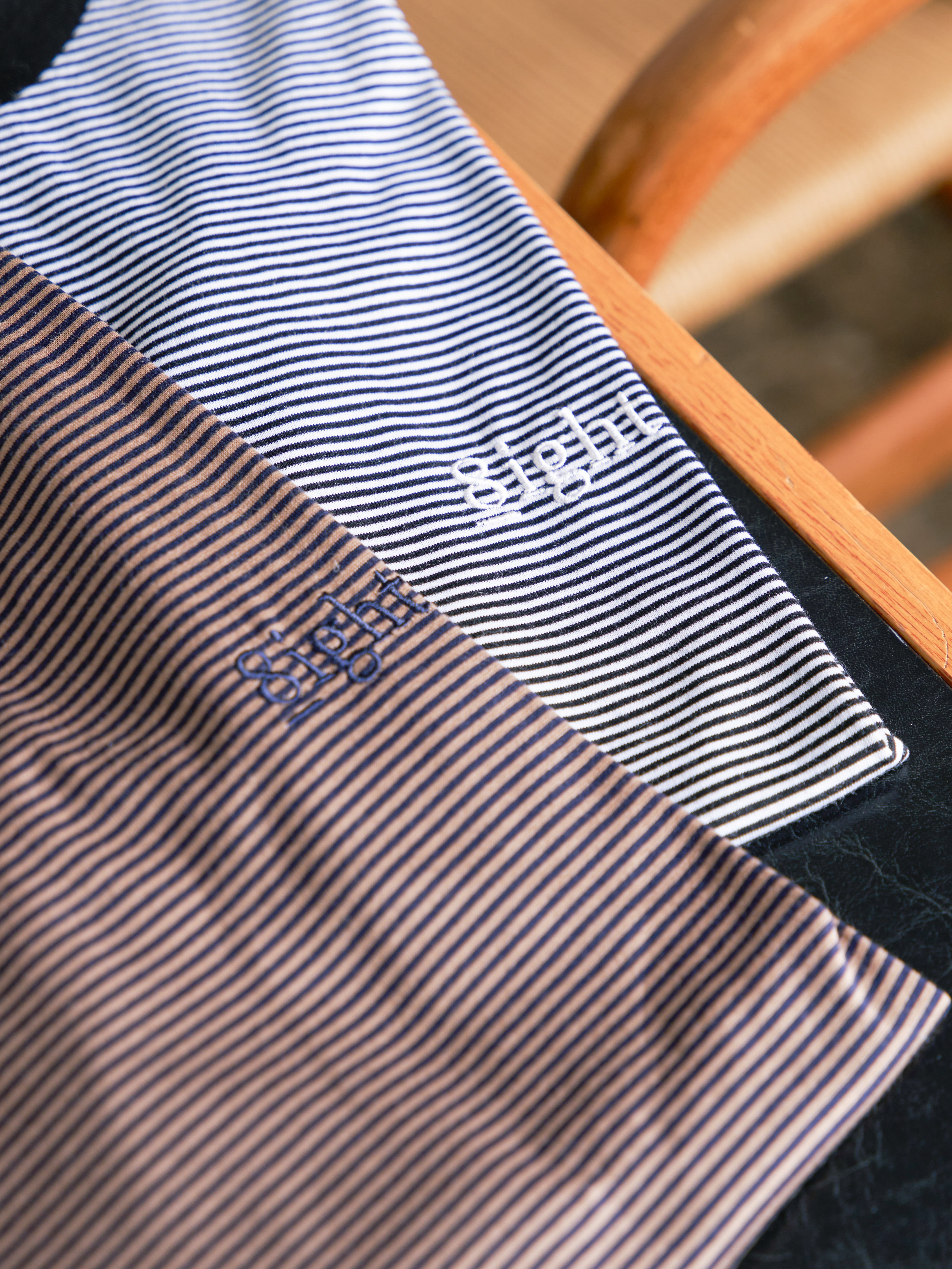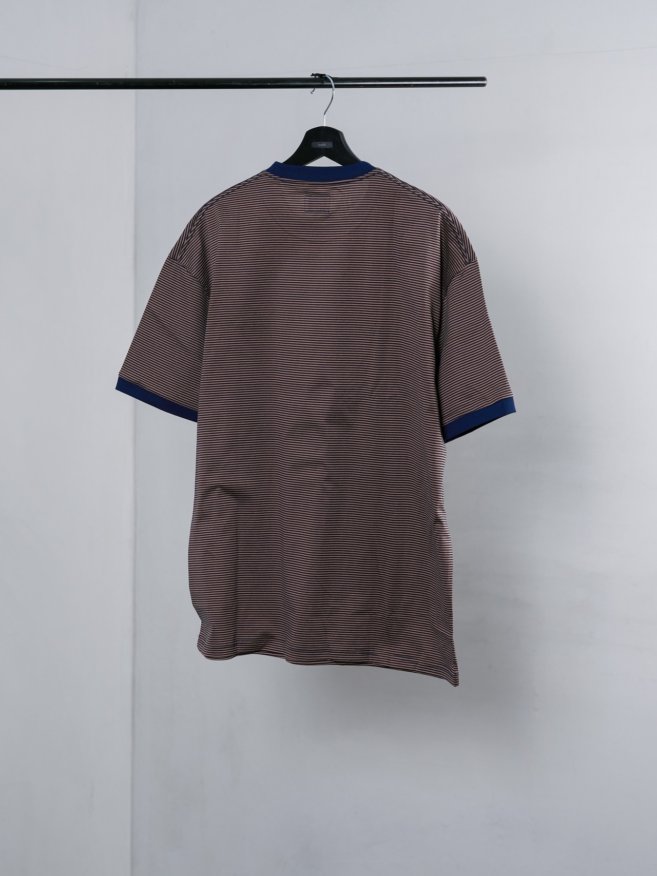 細ピッチのボーダーに、胸元の「8IGHT.」ロゴがさりげないアクセント。